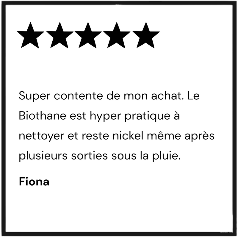 Le Biothane est une sangle en PVC ultra résistante, facile à nettoyer et hypo-allergenique.