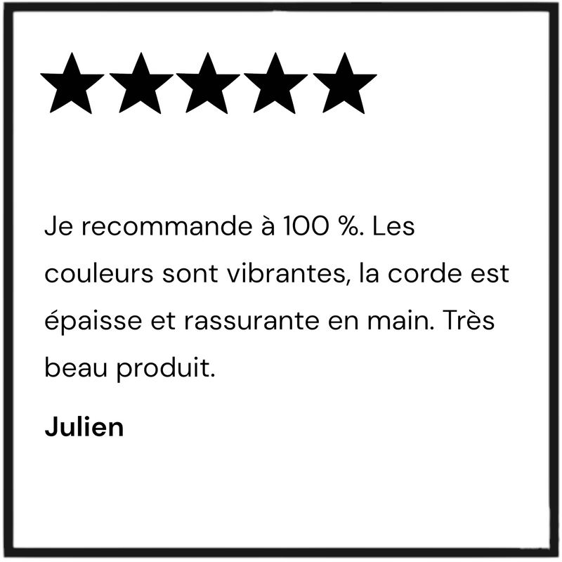 Nous utilisons également de la paracord hyper solide pour un maximum de sécurité… sans oublier le style.